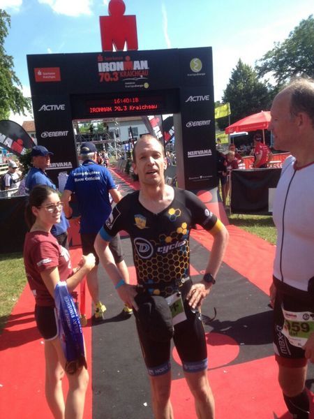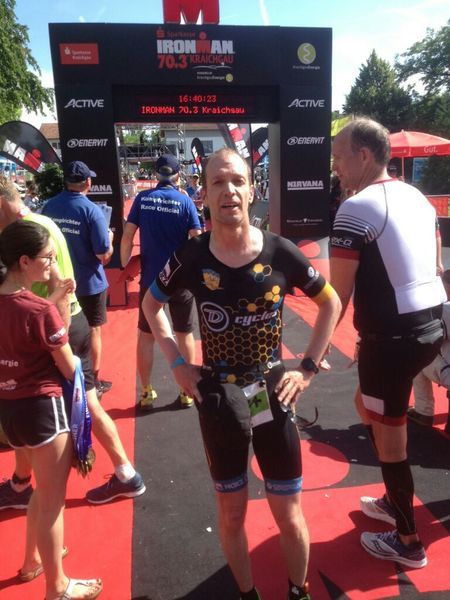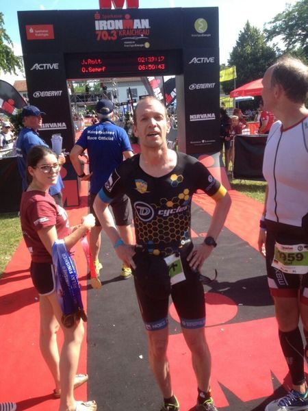 In diesen Wettkampf bin ich also recht beruhigt hineingegangen. Schwimmen war wie erwartet ohne Neo etwas langsamer, aber da war alles soweit im Rahmen. Auf dem Rad konnte ich dann so richtig ballern und bin dennoch sehr entspannt in der WZ2 angekommen. Wirklich auf die Uhr geschaut hatte ich bis dorthin nicht und auch im Ziel hat mich die Zeit erst mal nicht groß interessiert, hatte ich doch wirklich einen Lauf, der sich einfach nur gut angefühlt hat. Was ich da getrieben habe, ist mir dann erst zu Hause so richtig klar geworden: Mit dem Lauf habe ich die schlechtere Schwimmzeit überkompensiert und die 8 Minuten schneller als letztes Jahr kommen quasi komplett aus der Radzeit. Einfach nur happy!